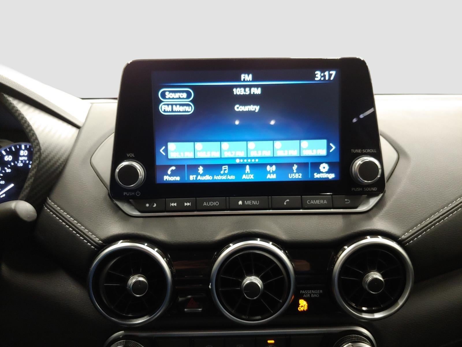- Radio: AM/FM w/RDS/MP3/Aux-In -inc: 6 speakers plus 2 tweeters in A-pillar, 8" color display w/multi-touch control, streaming audio via Bluetooth®, Bluetooth® hands-free phone system, hands-free text messaging assistant, Siri Eyes Free, Google Assistant voice recognition w/Apple CarPlay and Android Auto, NissanConnect, (1) front USB connection port (type A), (1) additional front USB (type C), (1) charge-only USB (type A) center console and SiriusXM radio w/advanced audio features